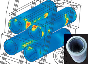 DFO沉流式除塵器獨(dú)特的橢圓形濾筒設(shè)計(jì),有效提高可處理風(fēng)量多達(dá)25%而沒(méi)有增加內(nèi)部氣流速度,不會(huì)導(dǎo)致濾材的磨損。先進(jìn)的FLUENT®*氣流建模軟件顯示,橢圓形濾筒有較少的高風(fēng)速區(qū)域,減低濾材磨損率,有效延長(zhǎng)了濾筒的使用壽命。