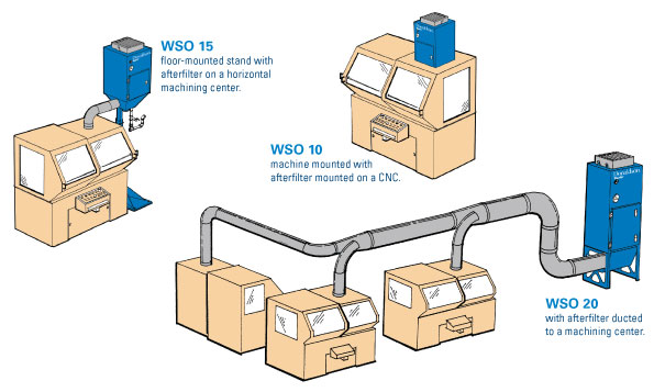 WSO油霧過濾器可以滿足各種設備的配置要求:可安裝在機頂上、地面上或連接中央管道系統